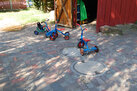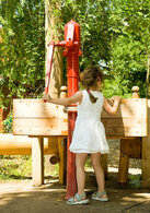Wiesen und Hügel, Felsen zum Klettern, eine Wasserstelle mit Pumpanlage, Sandkästen