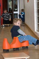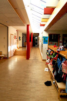 Die hellen Gruppenräume mit zweiter Ebene und Nebenzimmer, der lange Flurbereich mit angeschlossenem Turnraum und das große Außengelände lassen, je nach individuellen Bedürfnissen, Veränderungen zu und schaffen zahlreiche Rückzugsmöglichkeiten.