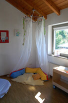 Die Bedürfnisse der Kinder werden in unseren Räumen berücksichtigt. Das liebevoll eingerichtete Gruppenzimmer mit Essecke bietet mit schiefen Ebenen, Spiegeln und unterschiedlichen Bodenbelägen ausreichend Bewegungsanreize und Sinneserfahrungen.